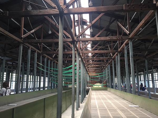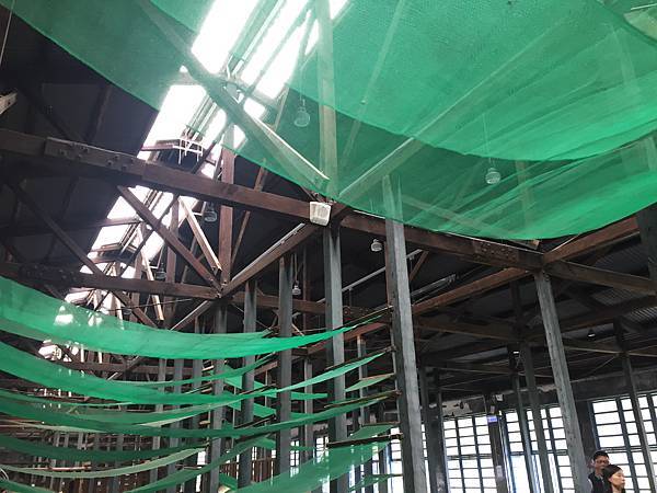 一踏進2樓就會被廣闊空間和爽適空氣所吸引,身心在一刻間感到鬆弛。可以見到以檜木所建置的梁柱結構,當年都是用檜木作為主材料,共有151支交錯木造的衍架。