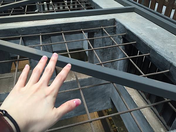 往2樓走上,在戶外平台處導覽介紹遠方的阿姆坪茶園位置,不過距離太遠,在茶廠是看不到的,但是周遭能見到一些翠綠竹子,他解釋:因為製茶的空窗期很長,這時候農民要怎麼生活呢,所以會種植一些作物,增加經濟效益。照片看不出這天還蠻熱的,平台上可是無遮蔽呢~