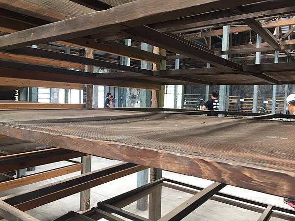 衍架上充滿孔洞,這些孔洞就是做「室內萎凋」必須的,綠色萎凋網會掛上滿滿茶菁,似乎可以想像那佈滿茶菁的畫面,多麼令人震撼。