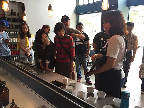 然後,導覽到門市展售區,稍微講解評鑑杯功能,還有千萬別得罪評鑑師,要不然茶葉的售價可是會越來越低,而賣不出去。隨後請大家喝個今日奉茶,導覽就結束囉!謝謝導覽員。